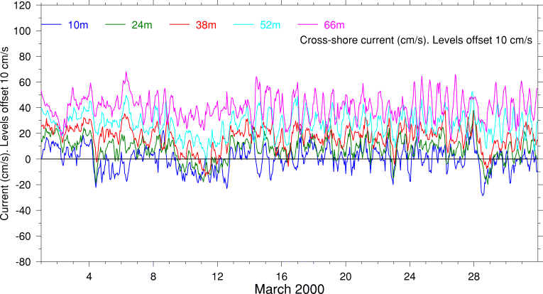 Cross-Shore Current, Year 2000 (positive toward 112T)