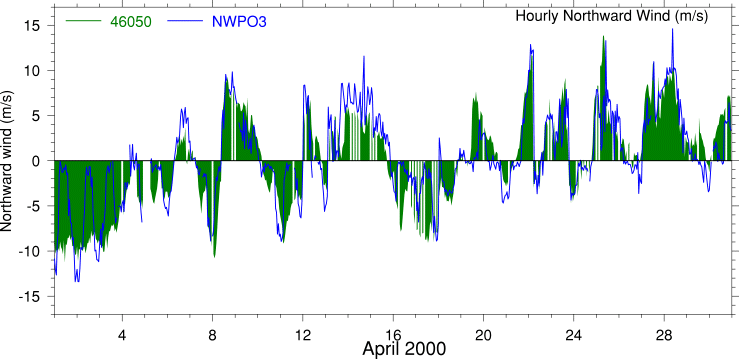 Alongshore Wind Speed, Oceanographic Direction Convention, Year 2000